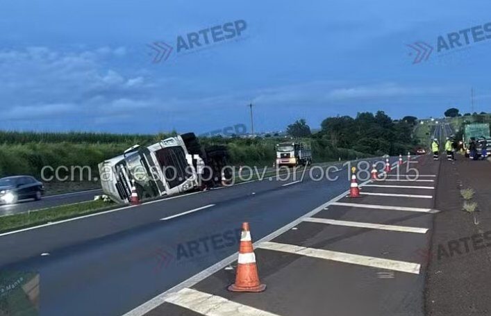 Caminhão carregado com 15ton tomba na Rodovia Comandante João Ribeiro de Barros