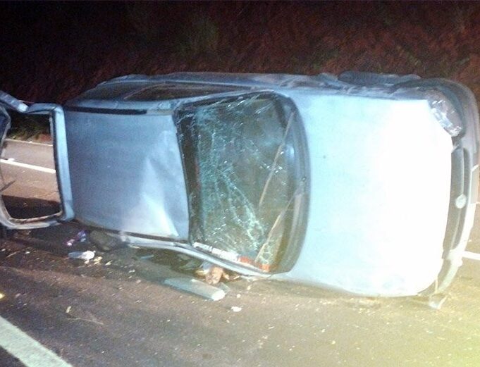 Colisão seguida de capotamento tem motorista pego no bafômetro e outro fugindo do local