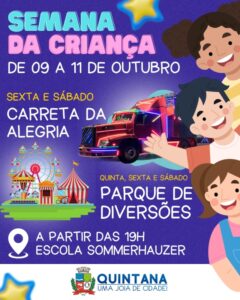 Programação especial Dia das Crianças em Quintana começa nesta quinta-feira (09)