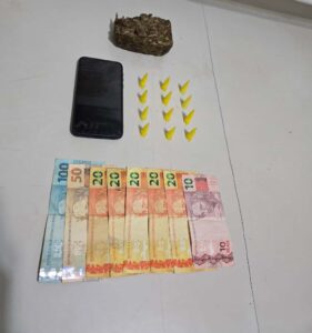 Enquanto isso, outra equipe realizava cerco no fundo da casa da mulher. Ela tentou fugir pelo portão da frente, mas foi alcançada. Em posse dela nada foi localizado, mas esta afirmou que na casa havia mais entorpecentes e dinheiro. Autorizada a entrada na casa, os policiais encontraram nos cômodos internos seis microtubos de cocaína, um celular e R$ 260,00 em notas. E mais, atrás do tanque de lavar roupa, foi encontrado um tijolo de maconha.