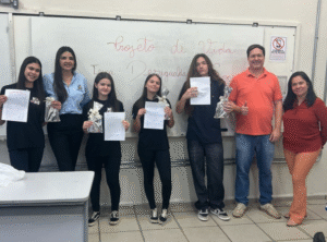 Como forma de incentivo ao engajamento e à excelência, as quatro melhores redações foram premiadas pela coordenadora Fernanda. A entrega contou com a presença da professora Gildeci e do diretor da escola, Guilherme, que vem desempenhando um trabalho destacado na condução pedagógica e na valorização do protagonismo estudantil.