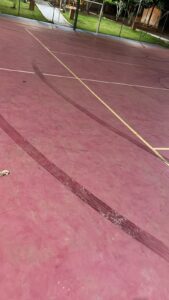 Uma das partes envolvidas neste caso procurou a reportagem para se explicar. A informação é de que realmente pôs seu veículo dentro da quadra para fazer fotos, mas não praticou nenhum tipo de “fritada” ou manobra que provocasse o vandalismo ou algo do tipo.