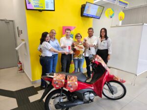 A cerimônia de entrega contou com a presença da vencedora da moto 0km, Marli Furlan Airoldi, do prefeito de Quintana, Fernando Itapuã, da chefe de gabinete e vereadora Solange Campanez, do representante do comércio de Quintana, Valdir Pires de Oliveira.