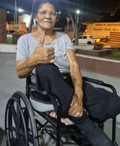 Dona Elenice ainda enfrenta problemas vasculares, com a amputação de dois dedos e a perda da força das mãos. Ela utiliza, atualmente, uma cadeira de rodas comum, mas por conta do seu estado tem passado por muitas dificuldades. Ativa, cheia de vida e com muita determinação, ela necessita de uma cadeira motorizada que passe oferecer para ela mais conforto e possibilidades. A vakinha solidária tem como meta R$ 10.000,00 (dez mil reais). A doação pode ser feita para o PIX (14) 997572829 – Qualquer valor já soma e ajuda para a meta.