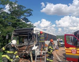 O registro foi entre um ônibus e caminhão, sendo constatada uma colisão traseira.