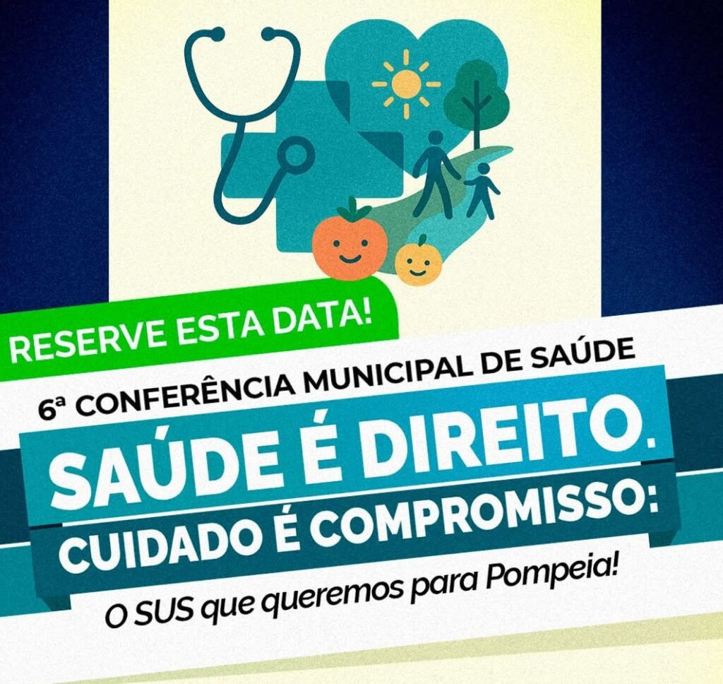 Acontece em Pompeia, no dia 24 de setembro, a 6ª Conferência Municipal de Saúde, com o tema “Saúde é direito. Cuidado é compromisso: O SUS que queremos para Pompeia!”, a partir das 8h, na Igreja Holiness – localizada na Rua José de Moura Resende, 700, Centro. A Conferência será um momento muito importante, sendo um […]