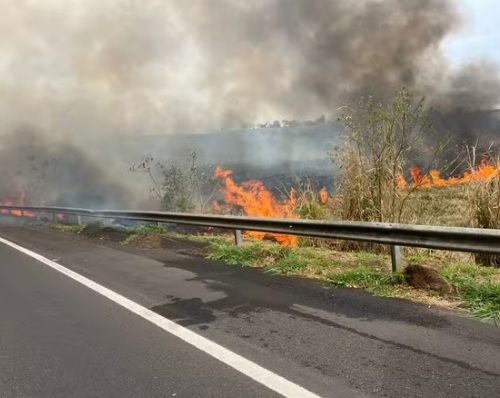 Mais um incêndio na região interdita rodovia e tem grande mobilização no combate