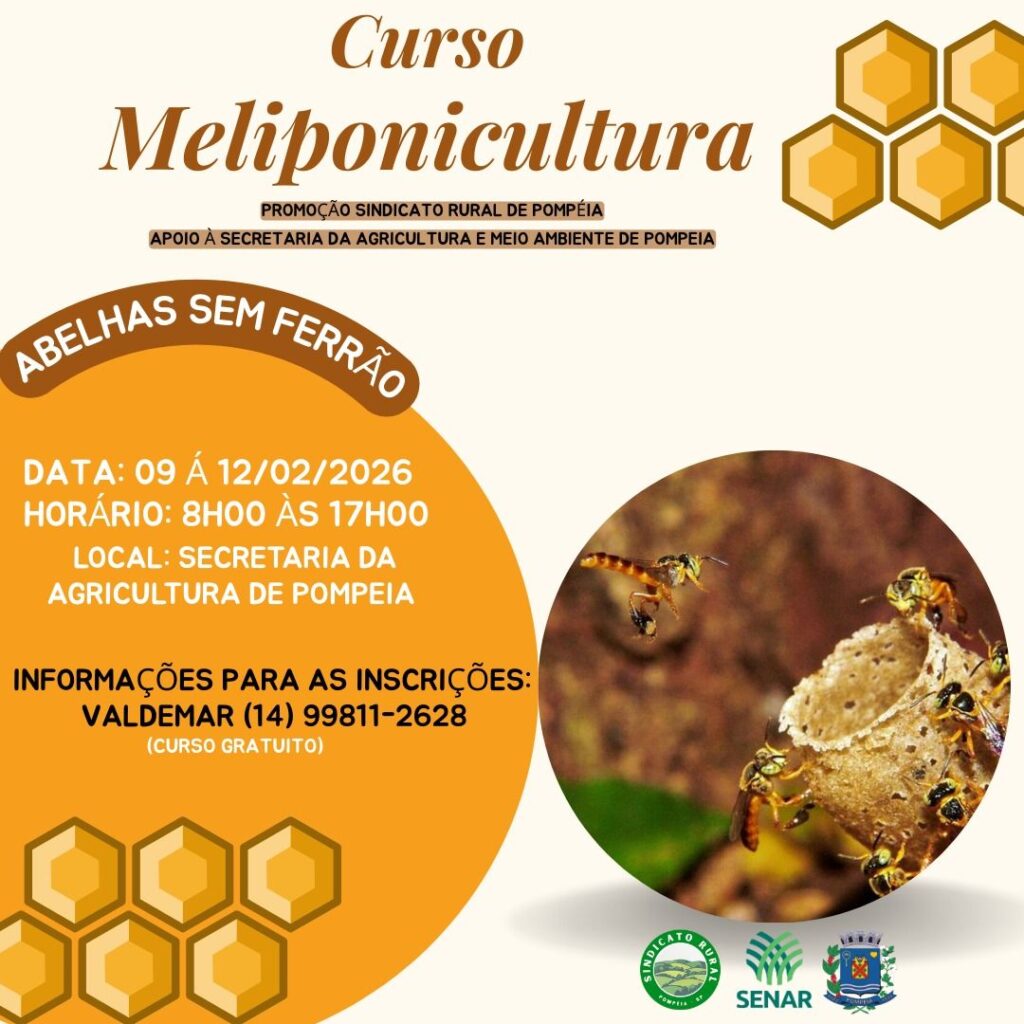Um trabalho importante oferecido aos trabalhadores do campo e afins tem sido a oportunidade de crescer por meio de capacitação e qualificação do Serviço Nacional de Aprendizagem Rural (Senar) e o Sindicato Rural de Pompeia. Exemplo disso é o curso gratuito que está com as inscrições abertas: Meliponicultura – Abelhas Sem Ferrão, que acontece entre […]