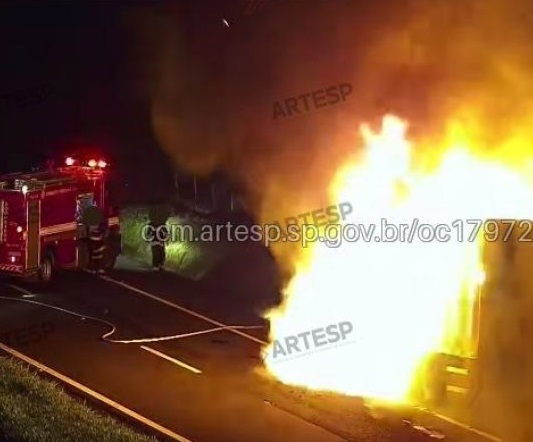 Caminhão pega fogo na Rodovia Comandante João Ribeiro de Barros (SP-294)