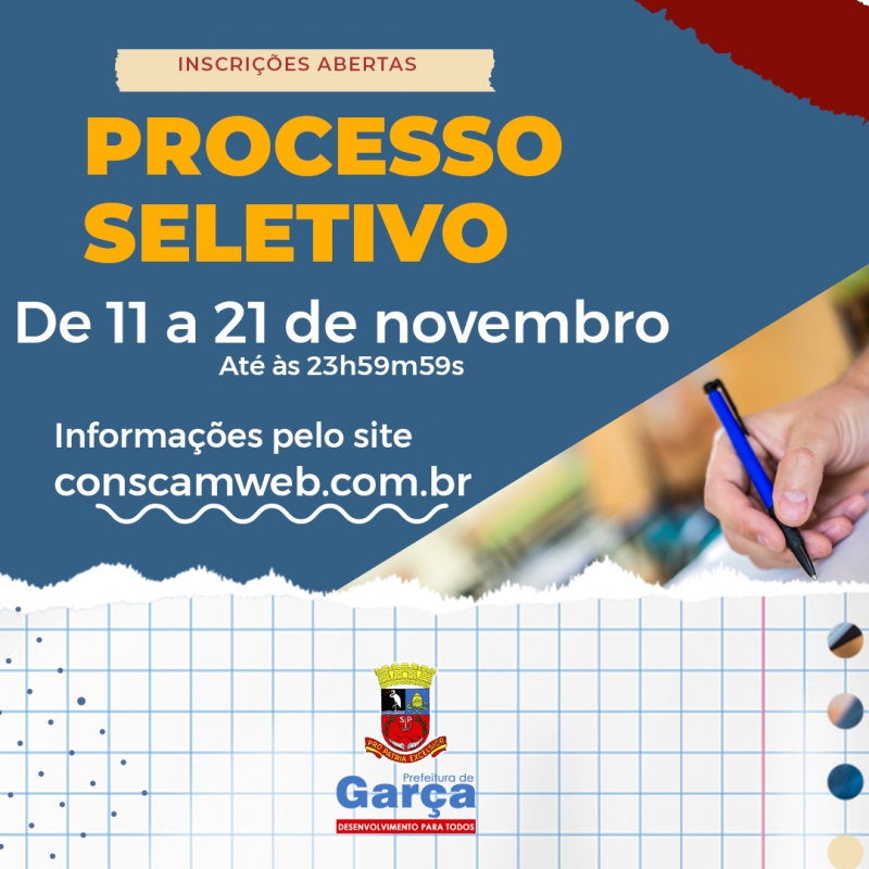 Último dia para a inscrição no Processo Seletivo aberto pela Prefeitura de Garça